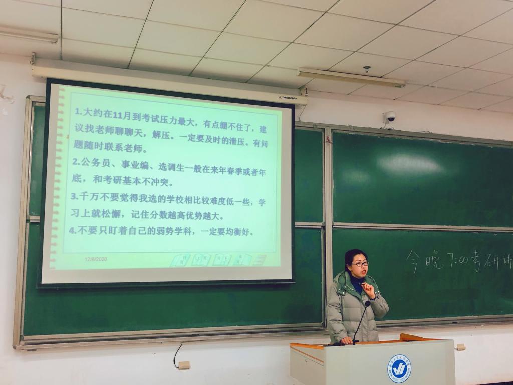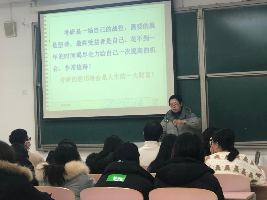 为进一步提高同学们对研究生入学考试的认识,激发考研热情,明确考研目标,解决在备考中存在的问题,食品系于12月9日在二教113教室举行考研方向指导讲座。食品系主任金海珠,教师高娜以及2018级本科、2020级专升本同学出席本次讲座。