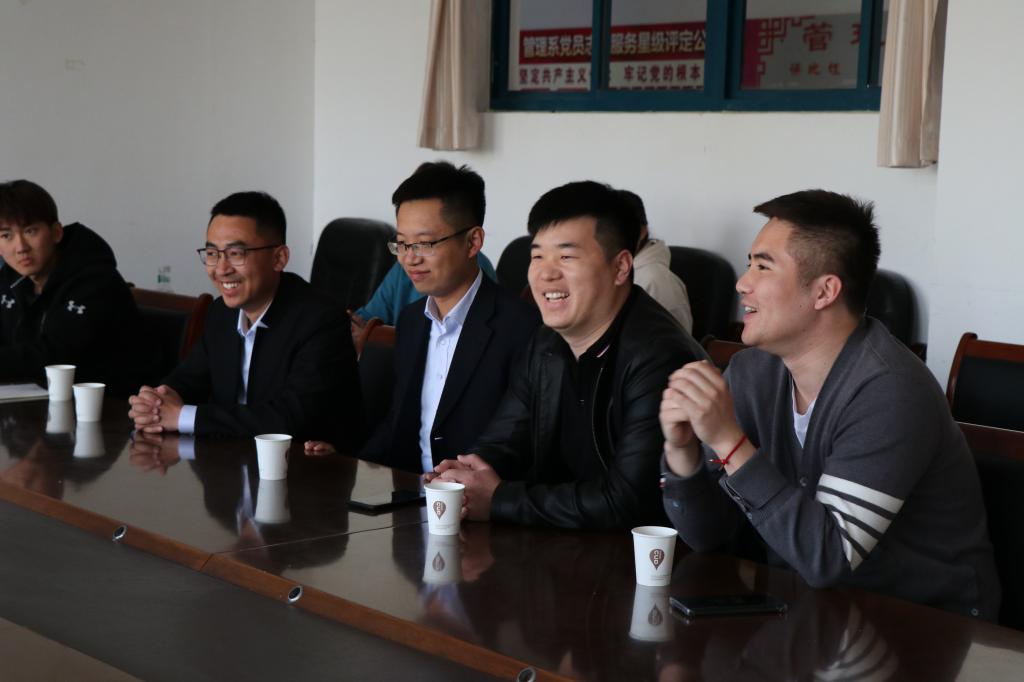 随后,高书记对四位校友的到来表示热烈欢迎,并从校园环境、发展建设、学习氛围等方面对学校近年来的发展状况做了介绍,阐释了经管学院在人才培养和学术研究工作上的发展思路。韩老师和丛老师对校友们的到来表示了感谢,并为他们近年来取得的优异成绩感到骄傲,鼓励他们他们继续拼搏奋进,为祖国的发展建设做出更大的贡献。同时勉励在校生向各位优秀的校友学习,脚踏实地,几年后以最好的自己走向社会。